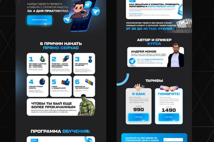 Необходимо было разработать лендинг для продажи практикума закупщика рекламы в телеграм