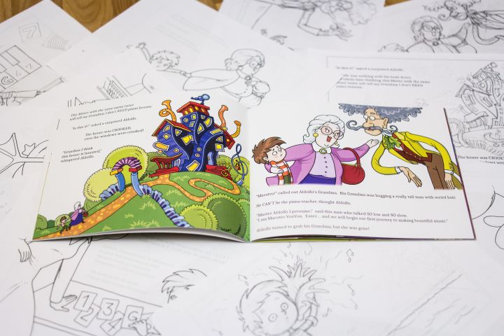Разворот третьей книги из серии книг, посвященной обучению детей музыкальной грамоте. Книга издана в Канаде в 2017 году.
