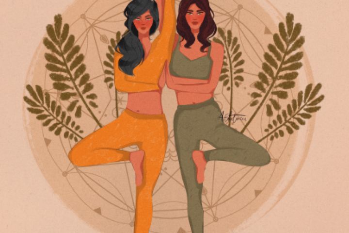 Иллюстрация "Парная йога" выполнена в программе "Procreate"