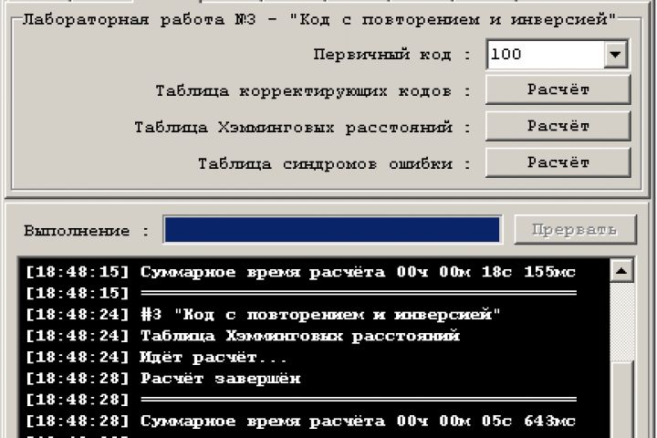 Стандартный пользовательский интерфейс для программы, вычисляющей данные для разных вариантов лабораторных работ по Теории Передачи Информации (ТПИ)