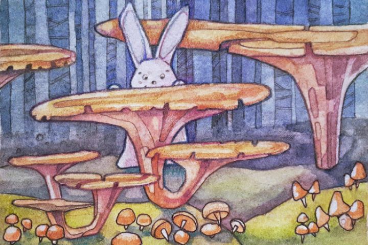 Иллюстрация с использованием традиционных материалов "Нут отправился на прогулку и внезапно обнаружил место полное сокровищ"