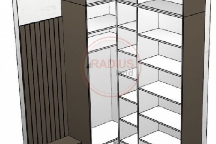 Сложная г-образная прихожая состоящая из нескольких модулей и трех текстур