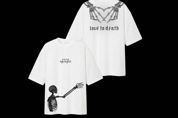 Белая футболка в готическом стиле.