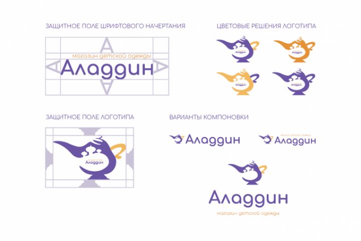 Фирменный стиль магазина Аладдин вариации логотипа и начертания