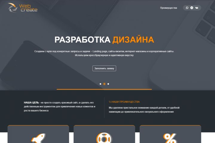 Сайт ВебСтудии Особенности: Слайдер, форма обратной связи, Портфолио
