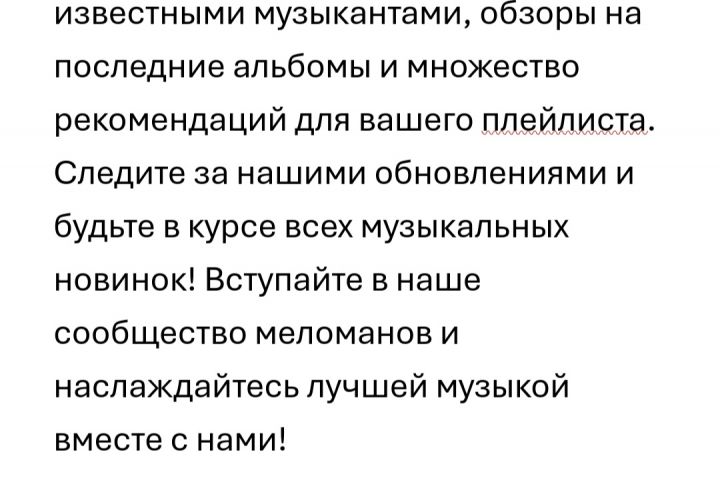 Рекламный текст в канал телеграмма о музыке
