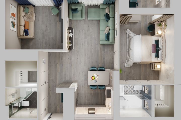 Дизайн проект интерьера квартиры площадью 68 квадратных метров, планировочное решение, визуализация, рабочая часть проекта