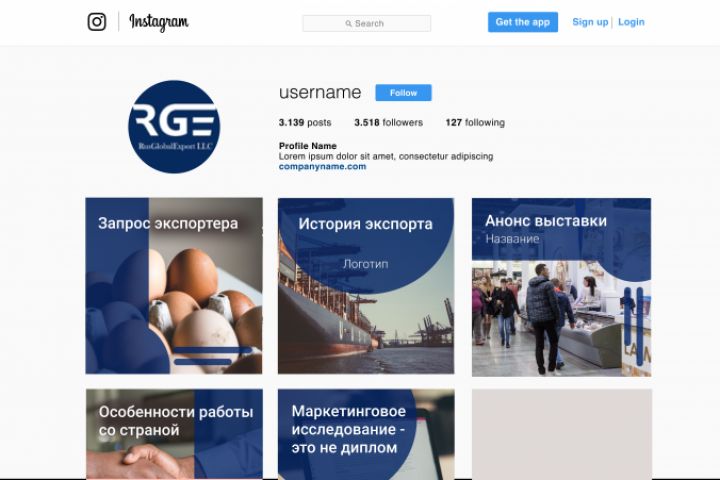 Оформление постов в инстаграм для компании РусГлобалЭкспорт
