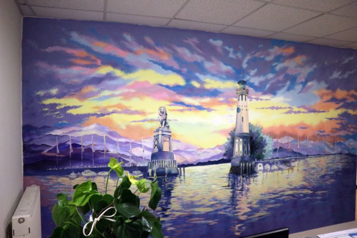 Роспись стены за ресепшн. г. Линдао (Германия) Акриловые краски, лак