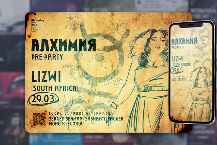 Афиша с отрисованными вручную иллюстрациями для мероприятия в баре в сочи Breaking Bad Bar