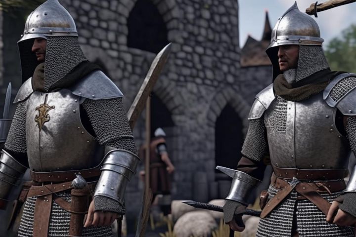 Результат генерации по запросу "Персонаж для компьютерной игры про средневековых рыцарей, рыцари ведут осаду крепости, рыцари хотят сломать ворота замка", стиль: 4k