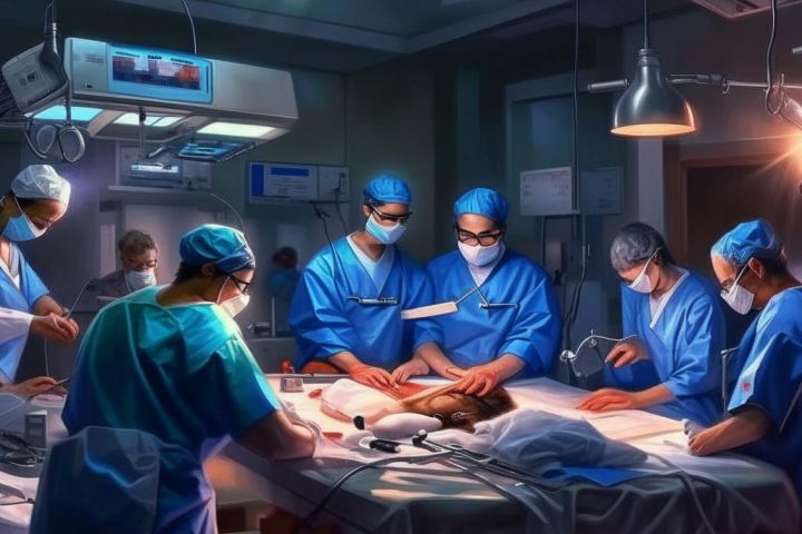 Результат генерации по запросу "создать иллюстрацию к журналу о трудовых буднях врачей, врачи делают операцию", стиль: 4k