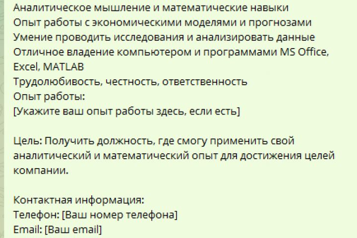 Написать резюме для устройства на работу. 60 лет окончил КГУ-КФУ имени Ленина по специальность экономист-математик. Трудолюбивый, честный, ответственный