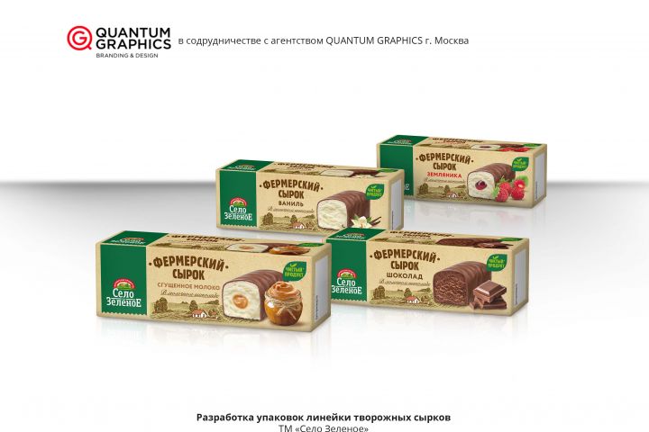 Разработка упаковки линейки творожных сырков. Бренд "Село Зеленое"