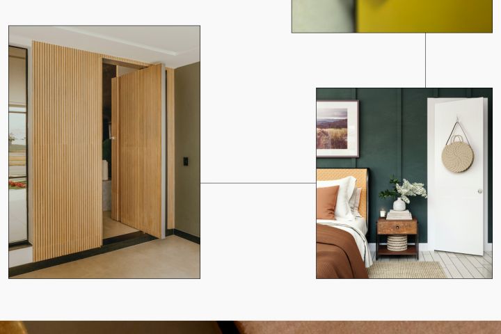 Входные и межкомнатные двери, напольные покрытия разных видов, размеров и цветов, с различными вариантами отделки и замков.
