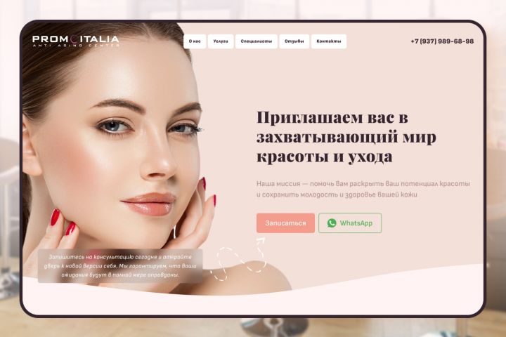 В итоге, разработан эффективный и красочный одностраничный сайт, полностью отвечающий запросам клиента и ожиданиям целевой аудитории. Созданный сайт представляет собой современное и функциональное онлайн-пространство, которое способствует привлечению новых клиентов в салон красоты. Сочетание качественного дизайна и удобной навигации делают этот сайт мощным инструментом для развития бизнеса