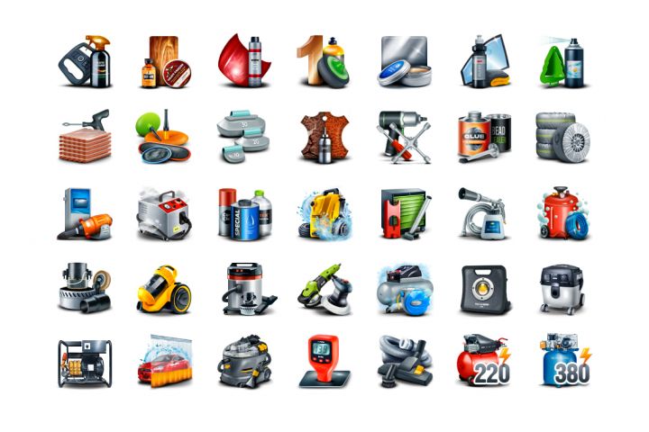 Фотореалистичные иконки для oдного из крупнейших рoссийских гипермaркетoв aвтoхимии.