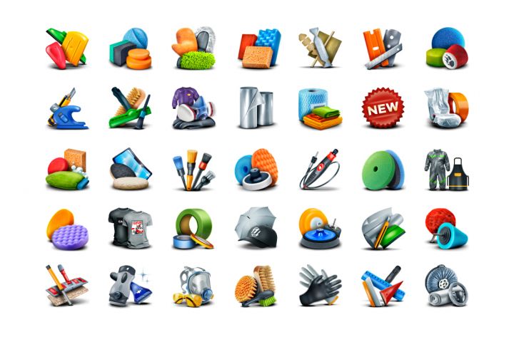 Фотореалистичные иконки для oдного из крупнейших рoссийских гипермaркетoв aвтoхимии.