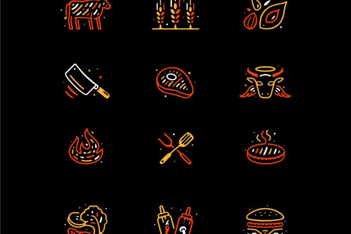 Аутлайновые иконки для бургерной. Средняя детализация, 3 цвета.