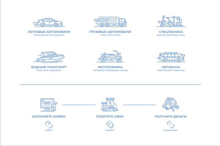 Составной сет из одноцветных аутлайновых иконок для автоломбарда.