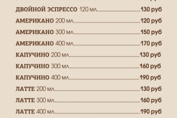 Меню для сети кофеен Зерно