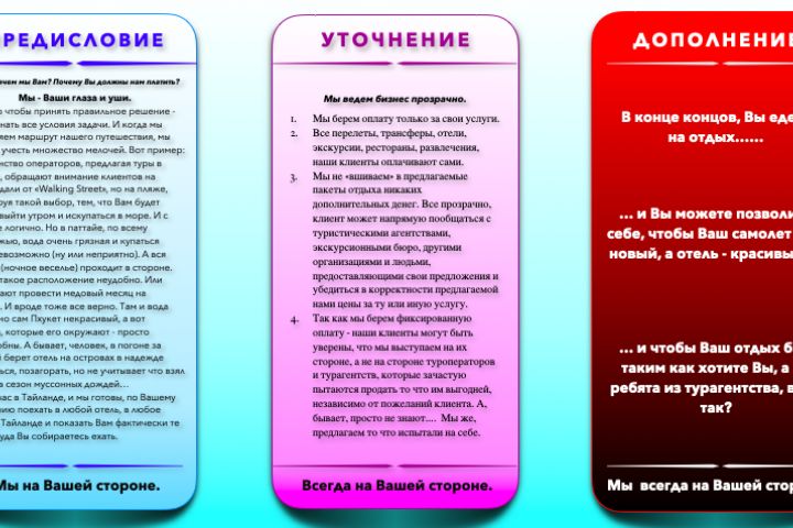 Разработка концепции в туристическом бизнесе. Создание уникального предложения. Реализация рекламного проспекта для туритической компании. Реклама туристических услуг. Индивидуальные услуги для туристов.