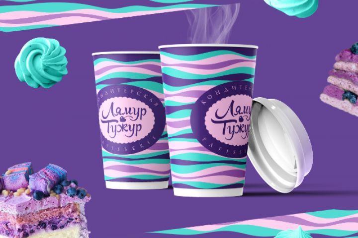 Разработка логотипа и элементов фирменного стиля для сети кондитерских "Лямур Тужур" в городе Краснодар.
