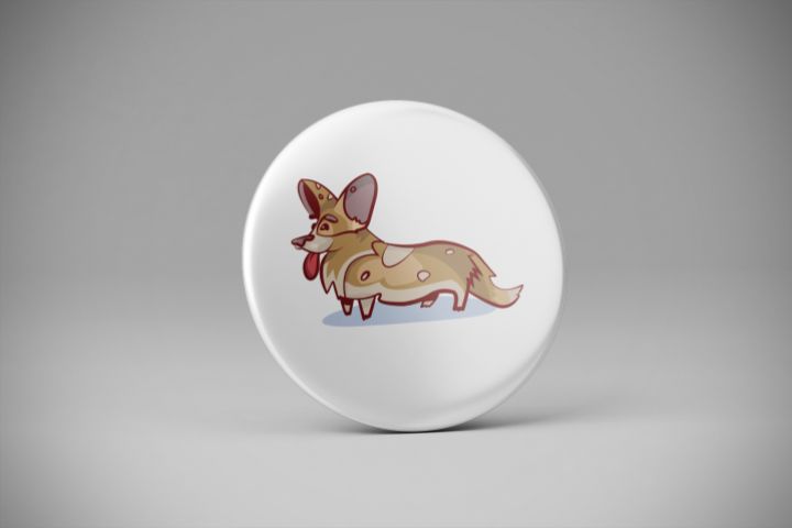 Векторная иллюстрация собаки для печати на значке. Для демонстрации заказчику выполнена на мокапе значка.