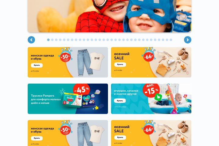 Редизайн сайте Детского мира. Создание главной страницы и страниц с поиском/фильтрацией товаров