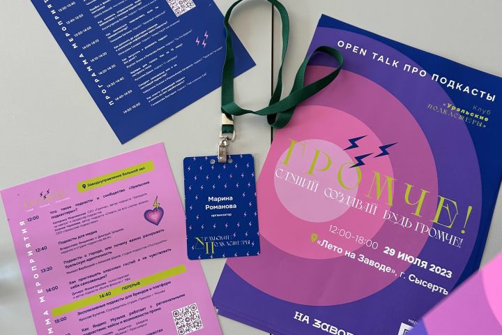 Сайт, афиша, бейджи, посты в соцсетях для open talk «Громче!» — первого мероприятия про подкасты. Создание дизайна сайта, афиш, фирменного стиля для нескольких мероприятий.