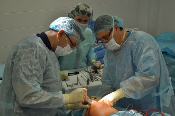Фотосъемка в операционной. Операцию на ПКС проводят врачи травматологи-ортопеды (Салихов М. Р. и Авраменко В.В.). Фото без ретуши (обработки).