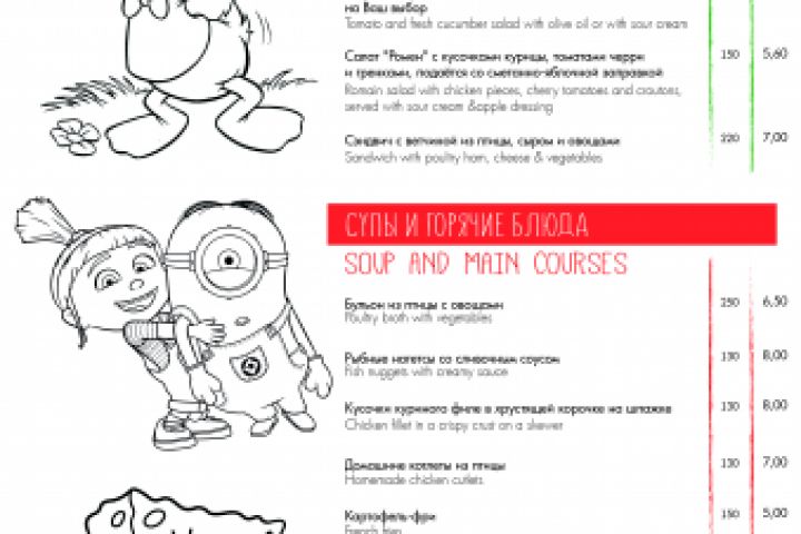 Разрабатывала дизайн детского меню для гостиницы/отеля.
