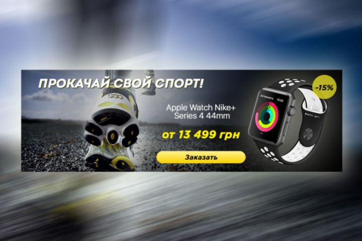 В рамках проекта стояла задача создать баннер, который отразит суть акции и будет понятно, что товар со спортивной направленностью. Срок реализации - в течении рабочего дня.