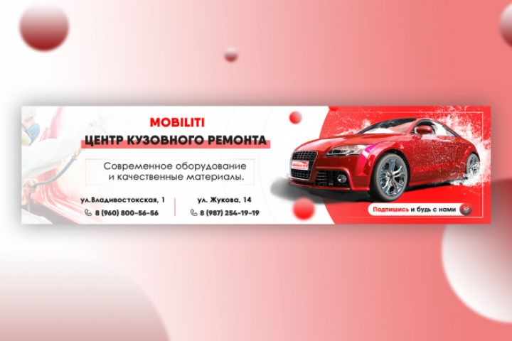 Обложка для группы ВК по кузовному ремонту в фирменной стилистике компании.