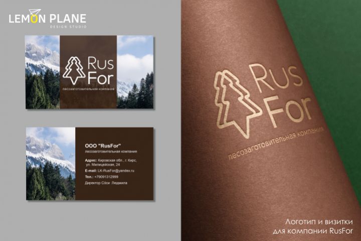 Логотип и визитки для лесозаготовительной компании RusFor