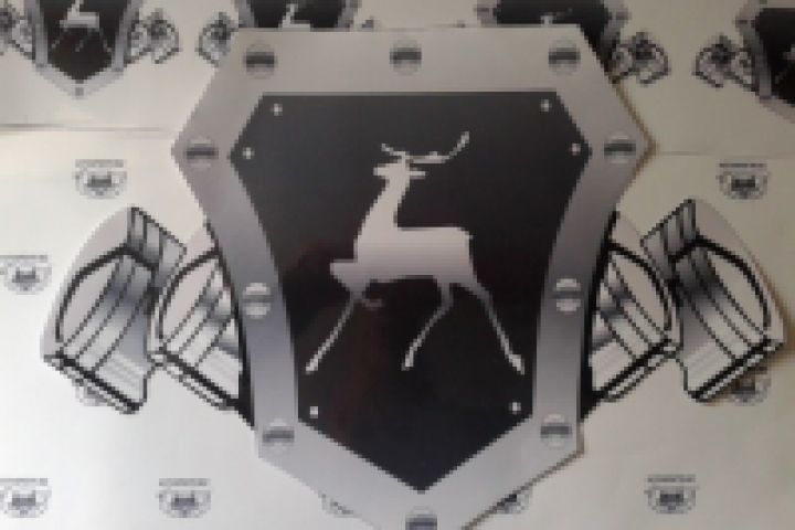 Логотип отрисован в векторе и напечатан на самоклеющейся пленке.