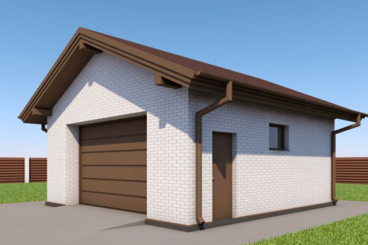 Гараж на 2 машины выполнен из газоблока 300 мм с облицовочным кирпичом, габаритные размеры 7,5х7 м