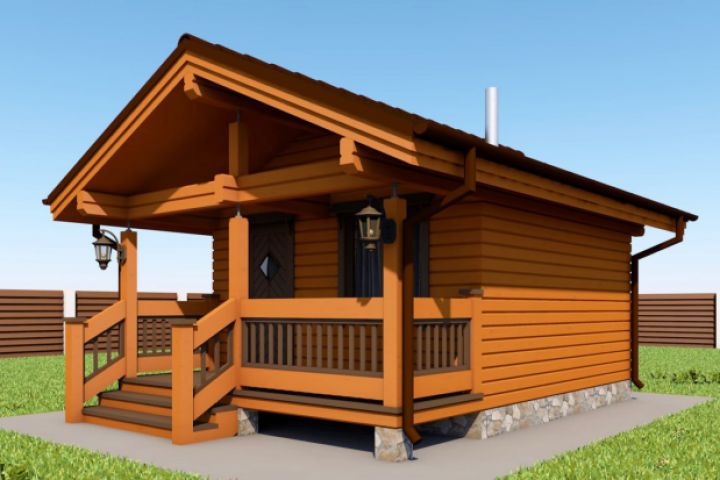 Баня выполнена из бруса 150 мм, габаритные размеры 6х6 м