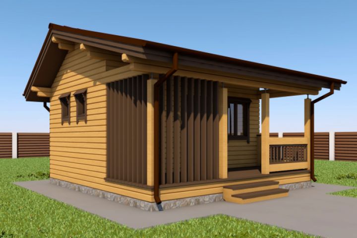 Баня выполнена из бруса 150 мм, габаритные размеры 6х6 м