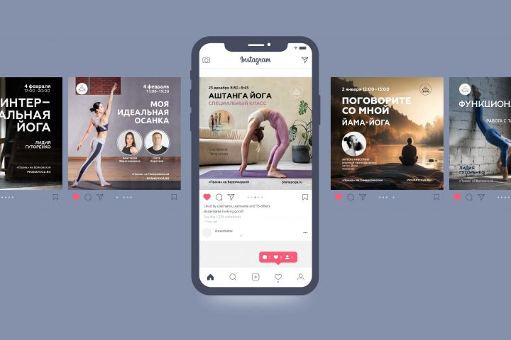 Разработка баннеров для рекламных постов предстоящих семинаров студии йоги "Прана"