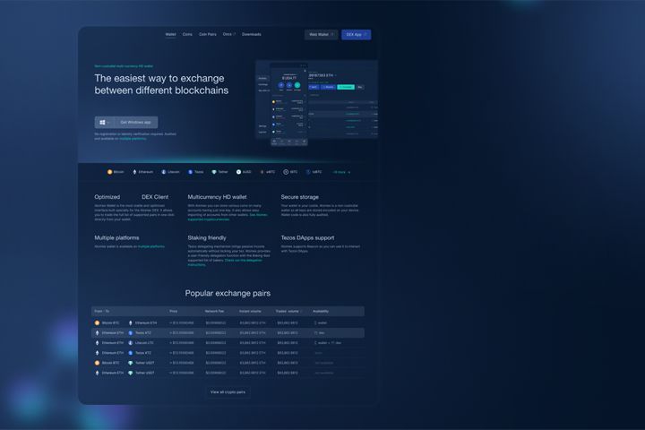 Сайт гибридной криптобиржи Atomex для веб, планшетов и мобильных устройств. Был разработан в короткий срок, чтобы удовлетворить резко возросший спрос на криптовалюты после введения санкций в адрес банковского сектора России.