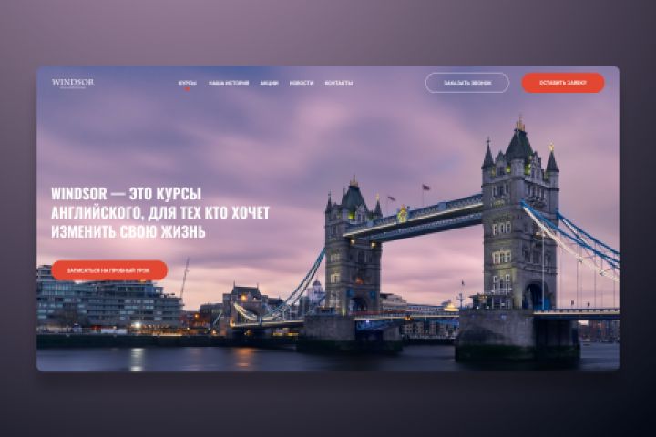 Windsor-Сайт для изучение английского языка, подготовка к переезду в другую страну. Это сайт для людей которые хотят изучить английский язык для работы, хотят уйти заграницу, работать заграницей. Обучение проходит в режиме оффлайн. Но, клиенты могут зайти на сайт, познакомится ближе, стать увереннее к компанию. Клиенты тут могут узнать о курсах, именно о Windsor, их историю, кому предназначены курсы, смогут оставить заявку на онлайн вебинары и много другие. Все было выполнено конкретно по ТЗ. Я использовал максимально цвета, фотографии которые вдохновляют людей, призывают к действии. Заказчик был очень довольным, и не забыл поблагодарить)