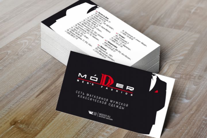 Дизайн визитки для сети магазинов мужской одежды "Модер"