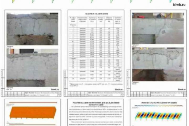 После проведения проверочного расчета, оказалось, что в конструкции плиты не была учтена изгибная жесткость, что привело к деформации покрытия при загрузке ее снегом. Это и насторожило подрядчиков. В самой чаше бассейна строителей беспокоило возникновение трещин. Путем скола молотком Шмитдта установили, что трещины были поверхностные 2-3 см глубиной и до 2-ух миллиметров шириной.