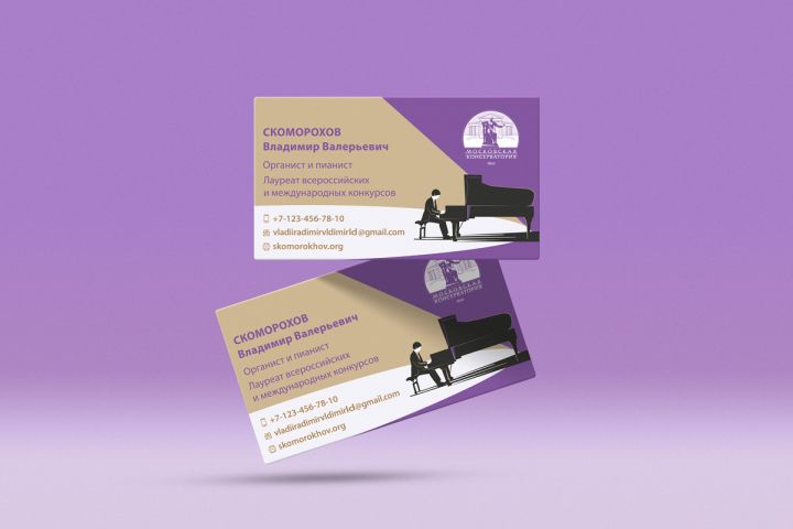 Разработка визитки для музыканта. Цель подчеркнуть деятельность.