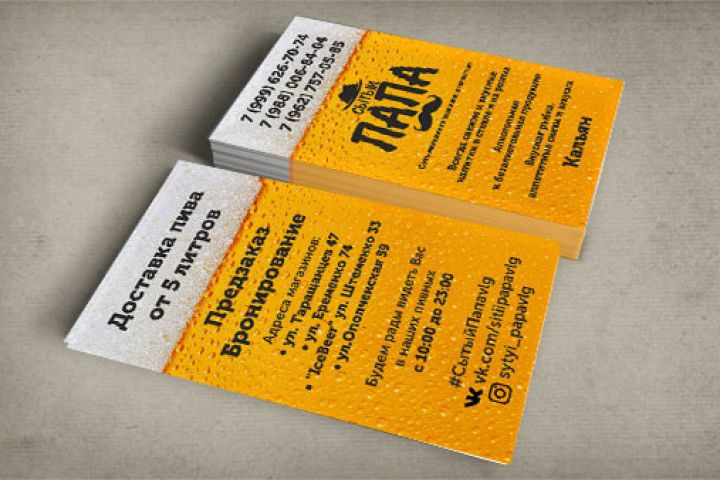 Двухсторонняя визитка для сети пивных магазинов "Сытый папа".