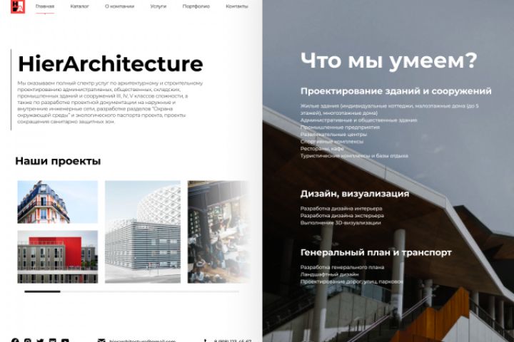 Вот так, по моему мнению, должен выглядеть современная главная страница сайта архитектуры. P. S. Не ищите компанию с таким названием, оно придумано мной)