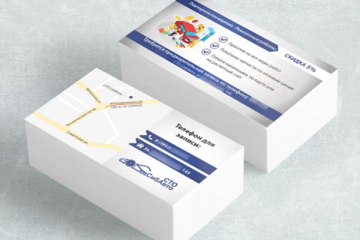 Дизайн двусторонней визитки для СТО "СибАвто"