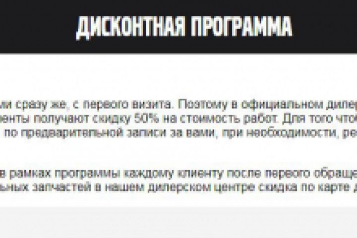 Текст на страницу "Дисконтная программа" для сайта официального дилера VOLVO в Москве Volvo Car M1.