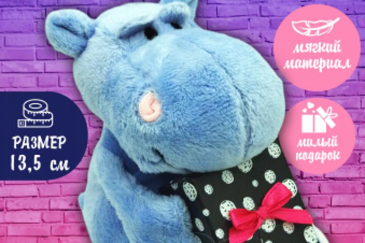 Мягкая игрушка "Бегемотик-милашка" с подарочной коробочкой. Инфографика для Вайлдберрис.